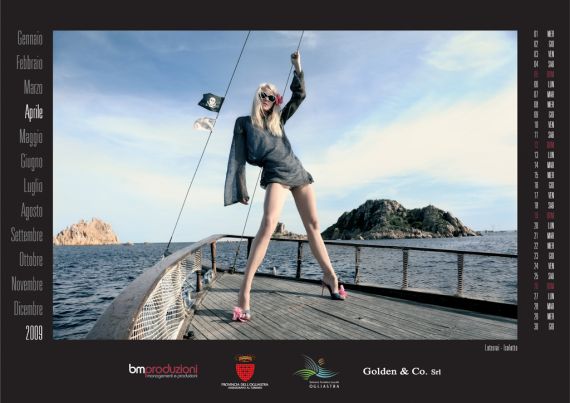 Gennaio può essere stravagante, soprattutto se una bionda mozzafiato in tacchi e costume da bagno indossa una pelliccia bianca sugli scogli di un mare brillante. Febbraio è sabbia e gioielli. A marzo invece provate a spogliarvi e a rimanere in topless ad ammirare l’orizzonte. Aprile, i pirati e un’aggressiva top model sono un tutt’uno con il cielo azzurro e terso. Maggio è bellezza, freschezza e acqua limpida. Giugno è caldo, tanto da lasciare nell’armadio soltanto i pantaloncini cortissimi e gli occhiali da sole bianchi come la schiuma delle onde del mare. A luglio le sirene si divertono perché guardano noi esseri umani che in modo patetico tentano di imitarle; qualcuno di tanto in tanto ci riesce. Ad agosto il corpo deve raggiungere il massimo della tonicità, altrimenti niente nuoto e niente tuffi. A settembre sta per tornare la stagione autunnale, meglio coprirsi, poco però. A ottobre siate trasgressivi e spogliatevi. Novembre è sinuoso e quasi nudo. Dicembre è qualcuno che vi augura buon natale in modo bizzarro.