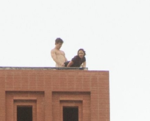 Di sicuro i presenti non sono rimasti assolutamente delusi dalla scenetta, dato che due amanti hanno preferito rimanere sul bordo del palazzo per l’intera durata della loro performance, non lasciando veramente nulla al caso e soprattutto non nascondendo nulla.