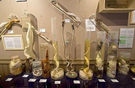In Islanda si trova un bizzarro edificio, probabilmente l’unico al mondo di questo genere: parliamo del Museo Fallologico Islandese più conosciuto però come museo del pene. La fallologia è una scienza antica, e Sigurður Hjartarson, un ex insegnante di storia di Reykjavík, è il fondatore e attuale direttore del Museo, che nelle sue sale espone più di duecento peni e parti di pene, appartenenti a tutti i mammiferi terrestri e marini, tra cui un pene di balena (foto sopra). Ma si possono ammirare anche campioni più folcloristici come i presunti membri di elfi, troll, mostri marini, e così via, e naturalmente anche creazioni artistiche che hanno per soggetto il pene.