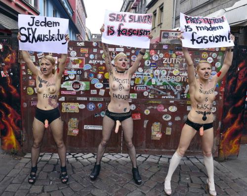 Le ragazze del gruppo, tutte adornate con fiori e capezzoli dritti come fusi, hanno protestato per le vie della città invitando i turisti a unirsi al loro disordinato corteo. Con le scritte “Fuck” ed “Euro 2012” tracciate su seni e pancia, le donne di Femen hanno detto alla stampa di voler lottare contro le istituzioni, colpevoli di aver dato precedenza agli Europei utilizzando soldi destinati al Paese per ricostruire gli stadi e offrire comfort ai loro giocatori. Oltre al calcio, importante anche la protesta sul tema della prostituzione e del maschilismo, molto comune, a quanto pare, in Ucraina dove le donne vengono viste come bambole sessuali a poco prezzo e empre diponibili; una situazione che, come spiegano le Femen, si era già verificata in passato e che non accenna a voler diminuire.