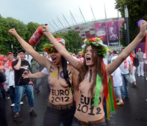 Tra goal e cori di incitamento, non potevano certo mancare le Femen, il gruppo di protesta famoso per i seni scoperti e i fisici perfetti. Il gruppo delle Femen si sono presentate qualche giorno fa in Ucraina, a Kiev, dove si è tenuto proprio ieri il match tra Svezia e Ucraina.