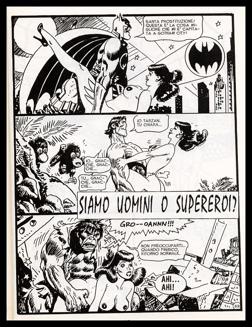 Qui di seguito troverete una piccola gallery, con la sua vignetta più famosa, quella relativa ai supereroi.