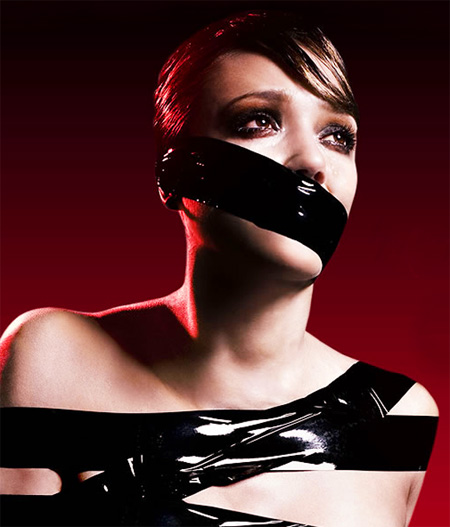 Va bene che i registi hollywoodiani di ultima generazione sono tutti un po’ sadici (Tarantino, Rodriguez, Eli Roth, solo per fare qualche nome), ma cosa dire della pubblicità shock per l’ultima campagna presidenziale americana? In questa pubbliicità a favore del voto per l’associazione Declare Yourself, l’attrice viene denudata e legata con un bel nastro adesivo nero lucido, come la star di un fetish party.