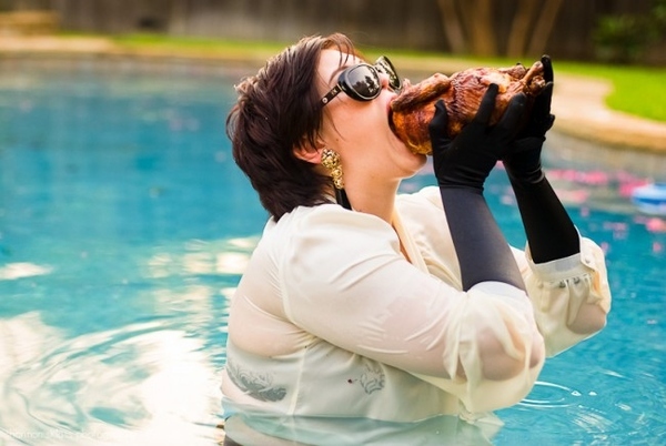 Tra tutte le modelle XL ce n’è una in particolare che sta facendo eccitare tutto il popolo del web. Il suo nome è Nancy Upton, ha una taglia 12 americana (una 46 italiana, circa) e un appetito incredibile. La ragazza ha infatti inviato al marchio di lingerie numerose foto di se stessa in cui viene ritratta mentre azzanna un pollo arrosto in piscina, guarda con ebbrezza una torta ai lamponi (sulla quale probabilmente ha appena schiacchiato il viso), si fa uno shampoo con una salsa simile alla maionese o senape e si spreme nella bocca una salsa ai mirtilli sdraiata sul pavimento e circondata dal gelato. Gli scatti (li vedete tutti nella Gallery che abbiamo creato per voi) sono sicuramente stati fatti da un fotografo professionista e la bella e prosperosa Upton sembra davvero calarsi bene nei panni di modella tanto che le sue foto, inserite on line sul sito del concorso, stanno mandando in brodo di giuggiole tutti gli amanti delle taglie forti.