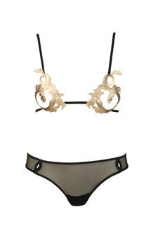 Stavolta la sorpresa viene proprio dall’Italia. Il noto brand La Perla ha infatti tirato fuori il suo jolly per la linea di biancheria sexy Black Label. Si tratta di un reggicalze molto particolare, che termina in una ampia fascia di metallo, un accessorio da amazzone che fa bella figura nell’armadio di una Mistress, soprattutto se accoppiato al reggiseno Dragon Bra in metallo dorato.
