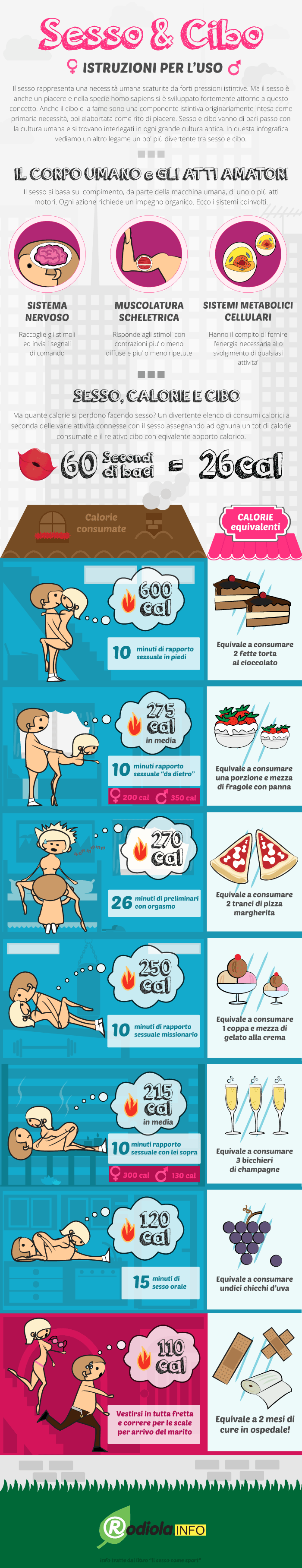 Il sesso è bello. Ci piace ed è un piacere irrinunciabile. Diverse volte lo abbiano considerato un ottimo modo per bruciare le calorie in eccesso. Questa volta ci pensa Radiola con un infografica davvero interessante e divertente da visualizzare a fare il punto su quanto e come il sesso ci possa aiutare a mantenerci in forma.
